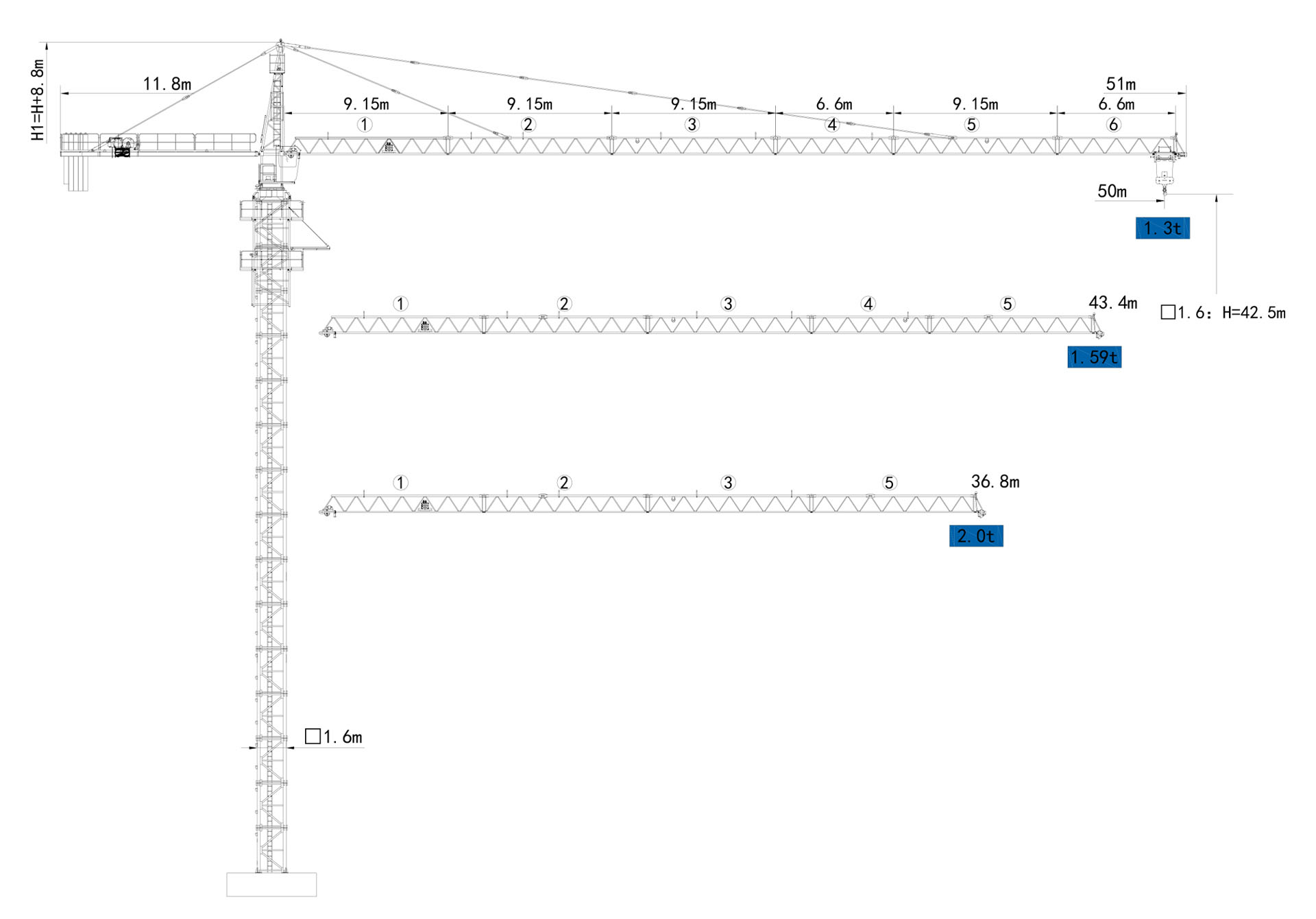 塔式起重機因設計廠商及使用目的的不同,可以分為固定於小範圍空間或電梯間可以爬升的固定式塔式起重機或固定於軌道車或履帶車上可移動的移動式塔式起重機。塔式起重機的頂端,設有可旋轉的椼樑或伸臂。駕駛台位於旋轉台上。塔式起重機的旋轉、吊升及移動的動力來自於電力、液壓或柴油機械。常見的塔式起重機形式可分為三類︰爬昇式、固定式及移動式塔式起重機。