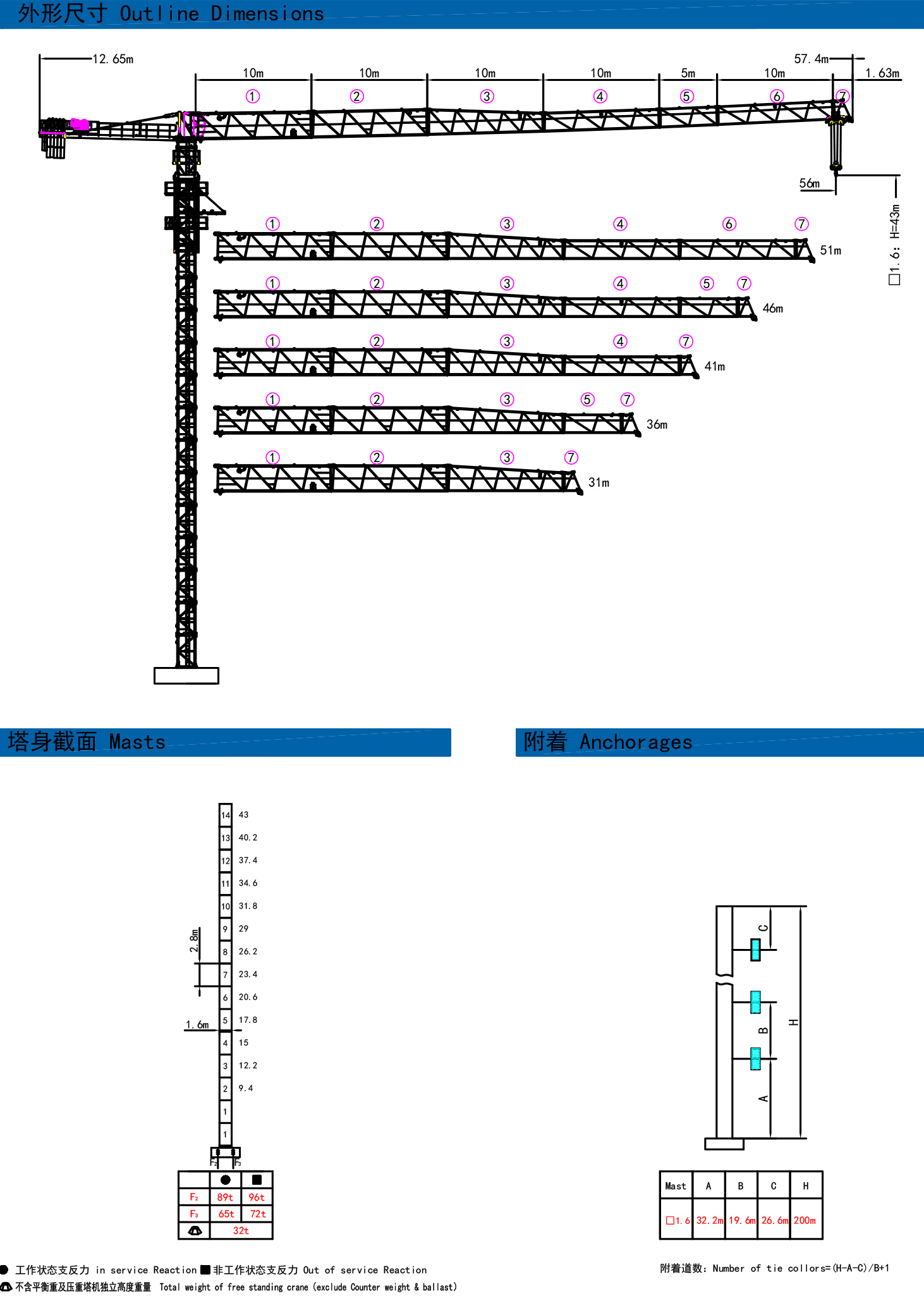 塔式起重機因設計廠商及使用目的的不同,可以分為固定於小範圍空間或電梯間可以爬升的固定式塔式起重機或固定於軌道車或履帶車上可移動的移動式塔式起重機。塔式起重機的頂端,設有可旋轉的椼樑或伸臂。駕駛台位於旋轉台上。塔式起重機的旋轉、吊升及移動的動力來自於電力、液壓或柴油機械。常見的塔式起重機形式可分為三類︰爬昇式、固定式及移動式塔式起重機。